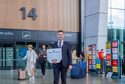 Begeben Sie sich nach der Passkontrolle und dem Gepäckempfang bitte umgehend zum vereinbarten Treffpunkt. Dort werden Sie von unserem Transfer- service erwartet. Sie erkennen diesen an einem Schild mit unserem Logo „Beauty Travels 24" (siehe Bild). Sobald Sie in Istanbul angekommen sind, erhalten Sie von unserer Mitarbeiterin vor Ort telefonisch die Informationen, wann Sie für die Voruntersuchung bzw. das Vorgespräch (in der Klinik!) erwartet/abgeholt werden. Anschliessend: Check-In im Hotel/Klinik. Diese werden Ihre persönlichen Daten aufnehmen, und Ihnen einen medizinischen Fragebogen aushändigen.